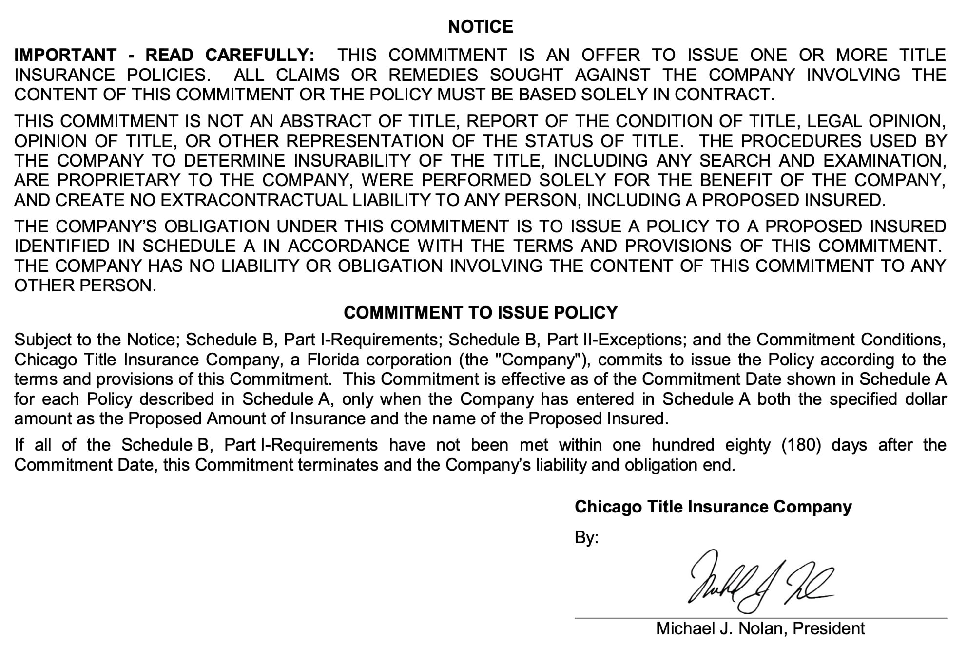 Title Commitment Washington Notice and Commitment