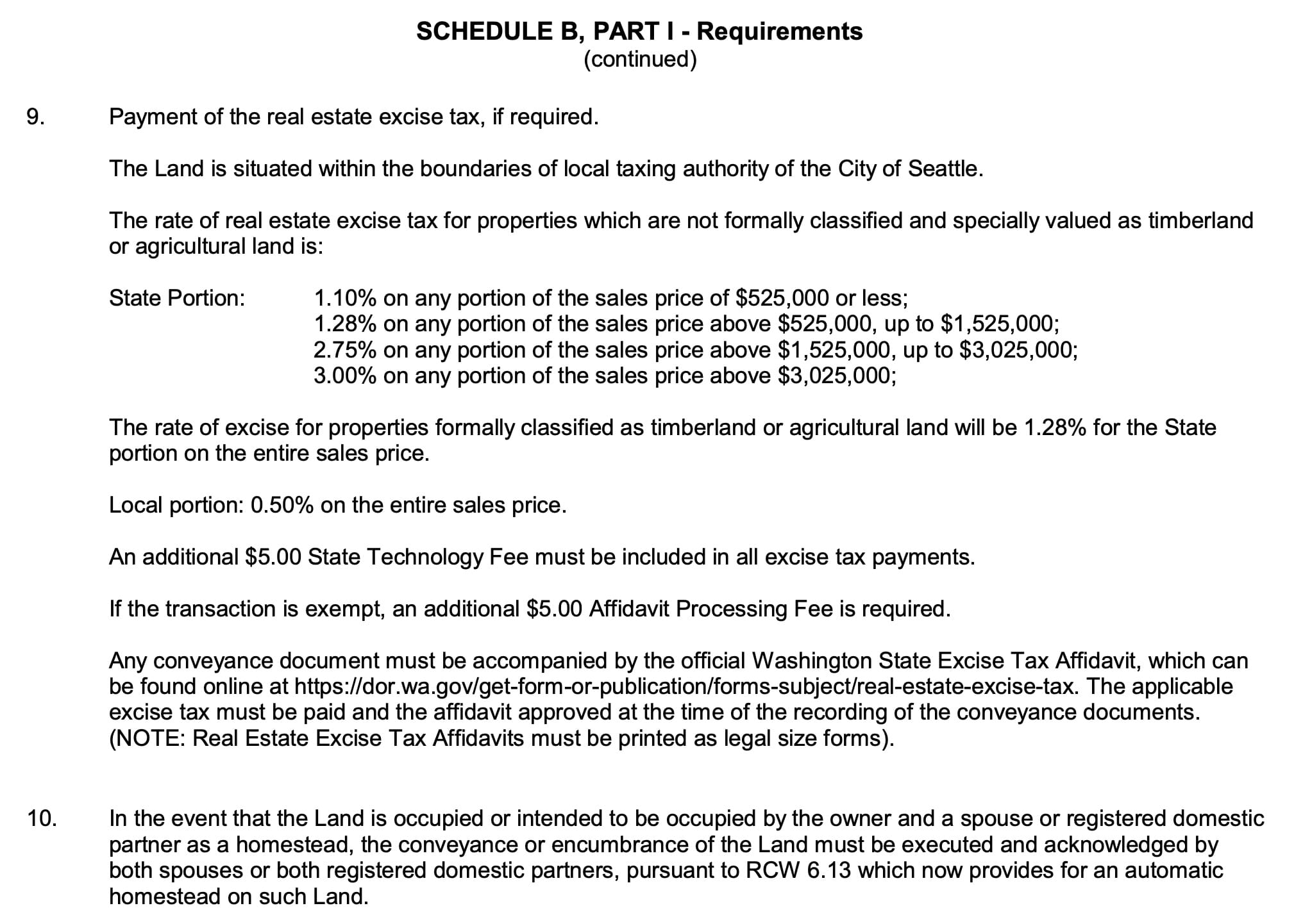 Washington Title Report Schedule B Part 1 Requirements