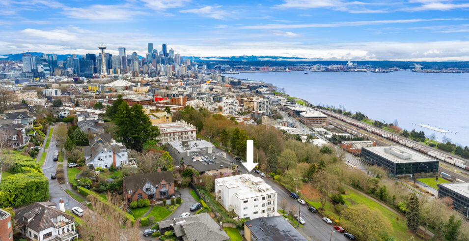 Recently refreshed and is ready to call home. Perched atop one of the city's most sought-after neighborhoods, this west facing unit offers jaw-dropping views of Puget Sound, the Olympic Mountains, and Kinnear Park; you do not need to worry about your view changing.