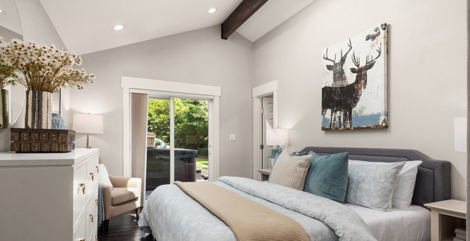 Single-level living maximizes space and comfort. Extensively remodeled in 2021: bamboo flooring, stacked-stone gas fireplace, chef’s dream kitchen w/double ovens & spacious walk-in pantry. Vaulted primary suite features a skylight, luxurious heated floors, & spa-inspired dual-rain shower.