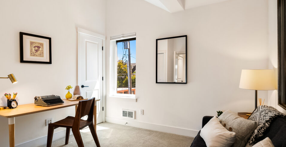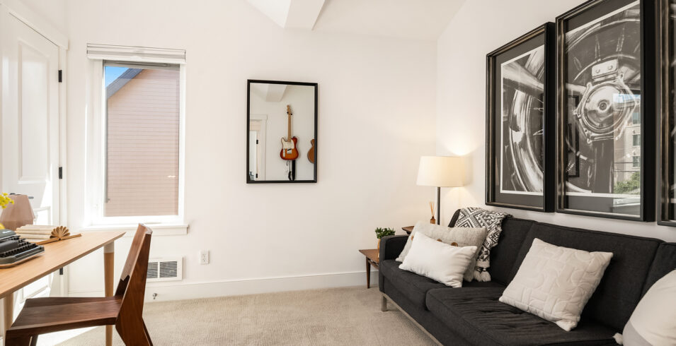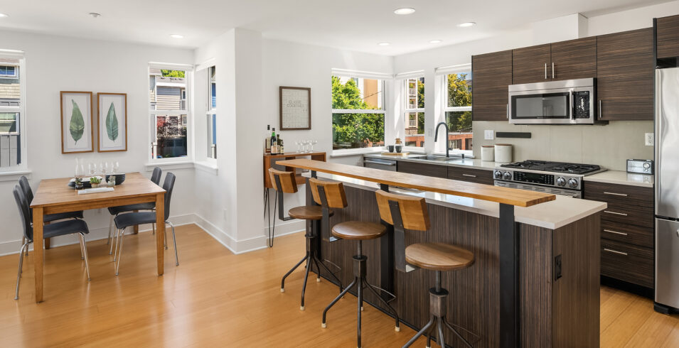 These days, you’ll find that many townhomes have long and narrow layouts with awkward spaces that sometimes have us scratching our hands. But not this Ballard beauty!! The main level lives large, with effortless flow between the neat kitchen, the sweet dining area, and the inviting living room. The upper level includes the primary suite, where vaulted ceilings let the already spacious layout feel even larger. Plus, tons of closet space and an ensuite bath promise primary suite perfection. Another bedroom is included on the upper level, which would be an ideal home office. On the ground level, another bedroom and bath are yours as well; this would make a fab guest suite (tons of privacy!), a super convenient Airbnb situation, or even present potential for a roommate arrangement. The ground level also has access to the garage—yes, there’s even a garage! A private, shaded patio rounds out this townhome’s hard-to-beat layout and flow.