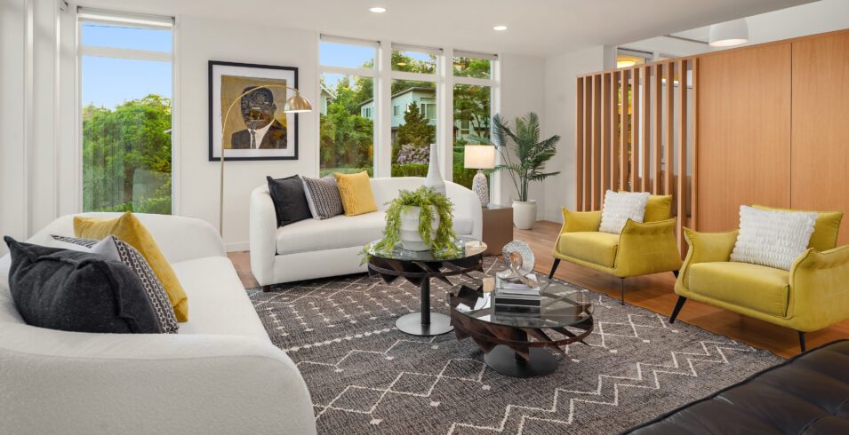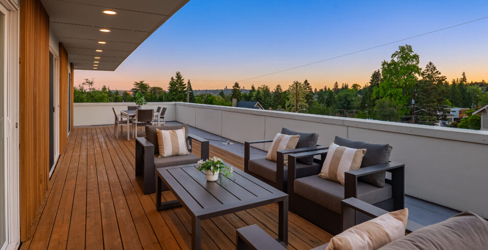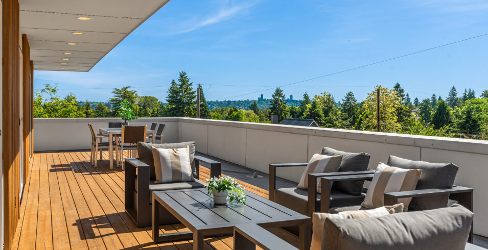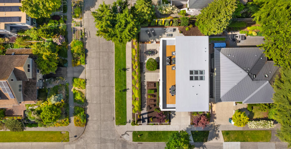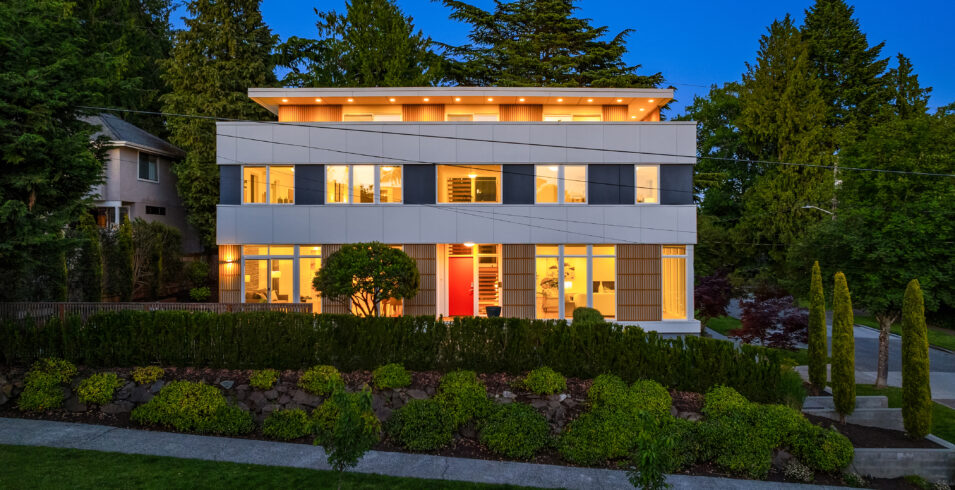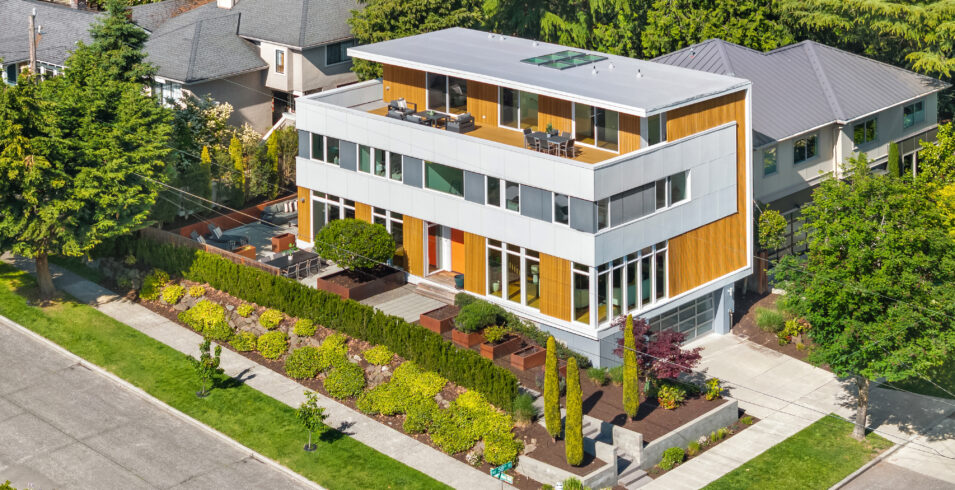 Striking modern in Hawthorne Hills pairs cutting-edge design with everyday ease. A sun-soaked great room links a pro-grade kitchen to living & dining zones, while a glass-lined staircase anchors the space. Three upper-level suites, one more bedroom, and an office give everyone room to grow, study & play. Radiant floors, mini-split A/C, smart wiring. A beautifully landscaped fenced yard and a rooftop deck invite outdoor fun. Stroll to parks, the Burke-Gilman Trail, the Met Market, and top-rated Bryant-Eckstein-Roosevelt schools. Minutes to Magnuson's lakefront, University Village shopping, UW light-rail, and quiet tree-lined blocks that host block parties and enjoy low local traffic—life here flows.