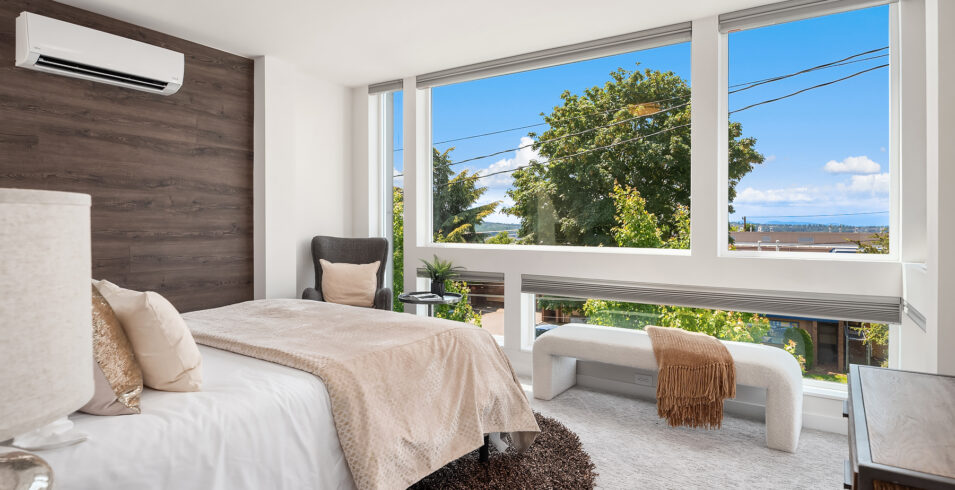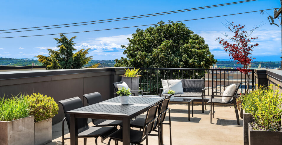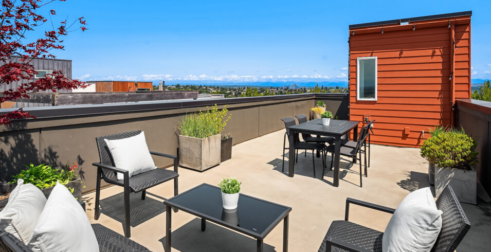 About 2,010 sq ft across three sun-lit levels blends designer style with daily ease: wide-plank hardwoods, floor-to-ceiling windows, quartz kitchen, walk-in pantry, mini-split A/C & an expansive rooftop deck with stunning Mt Rainier, Downtown Seattle, Lake Washington, and both Olympic & Cascade Mountain views.