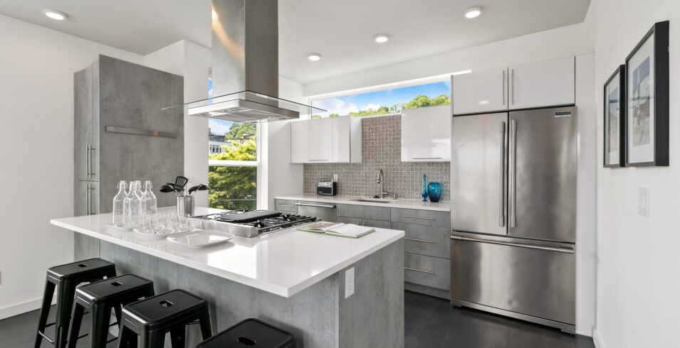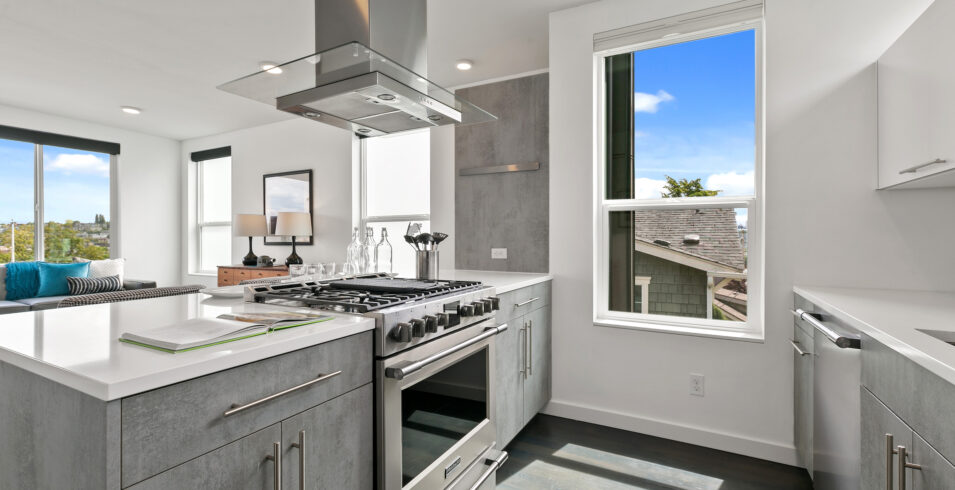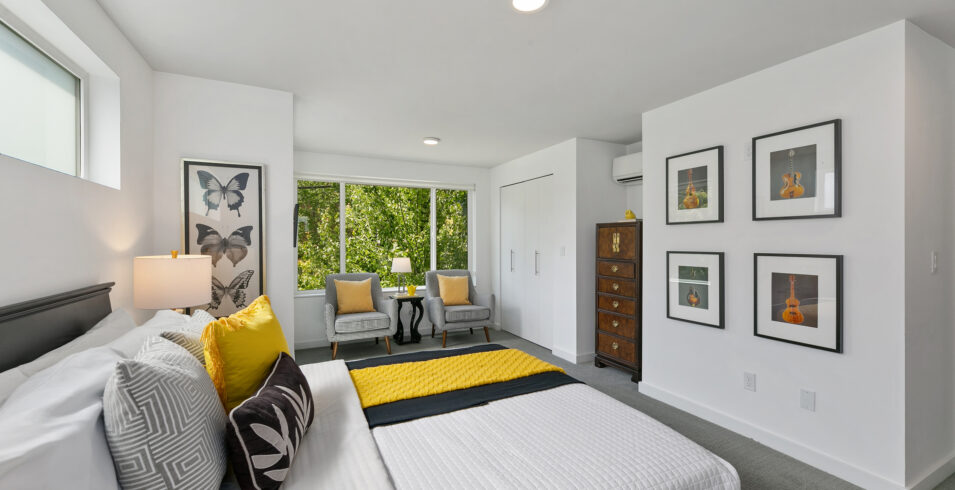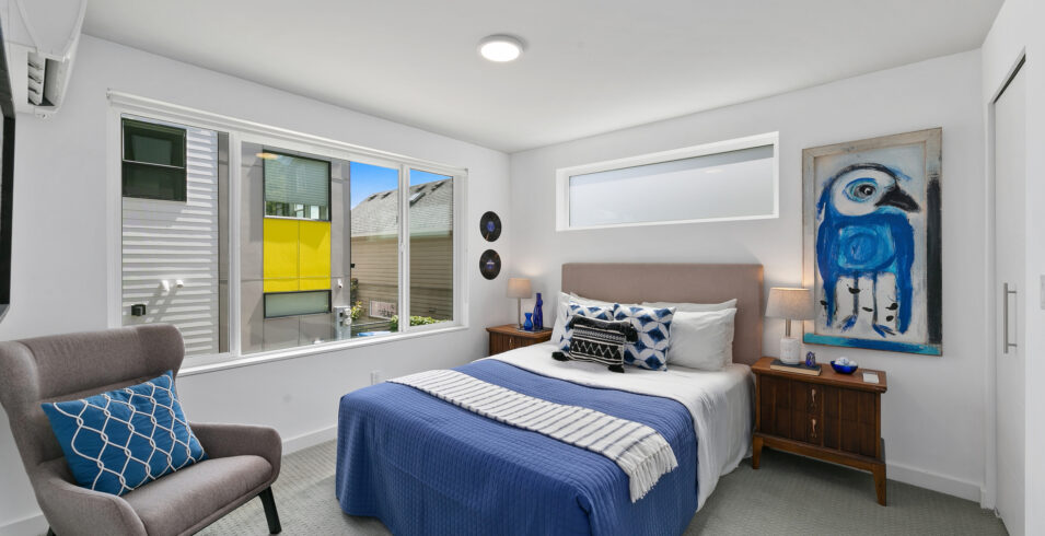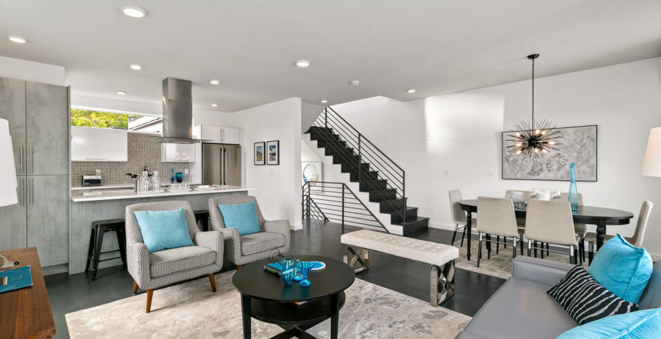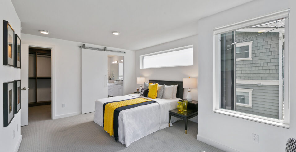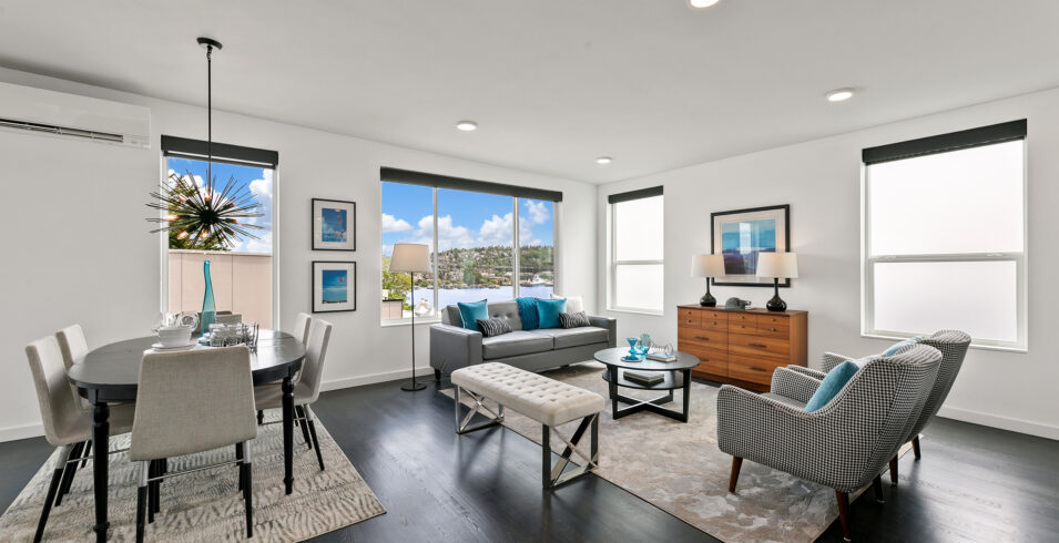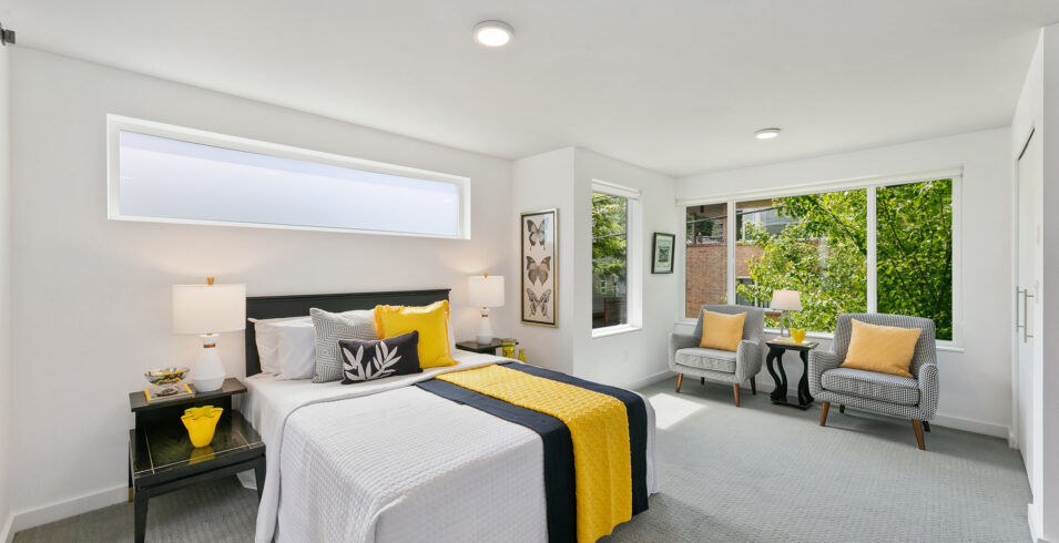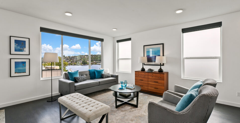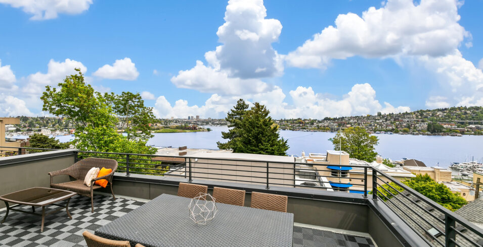 This Westlake Wonder has a reverse floorplan, but before we talk about why we love reverse floorplans… what’s a reverse floorplan? Well, when people think of a “classic” home layout, oftentimes the main living area is on the ground floor, and the bedrooms are all upstairs. But with a reverse floorplan, the bedrooms are on the lower level(s), and the main living area is at the top. This usually means that the main living areas have tons of natural light (here in Washington we need all the sun we can get!), and bedrooms can be darker (perfect for getting your zzzz’s in). There are also usually better views (which is definitely the case with this townhouse… Lake Union, you are looking fineeee!), and the rooftop deck is just a staircase away. You can read more about a reverse floorplan in our blog here!