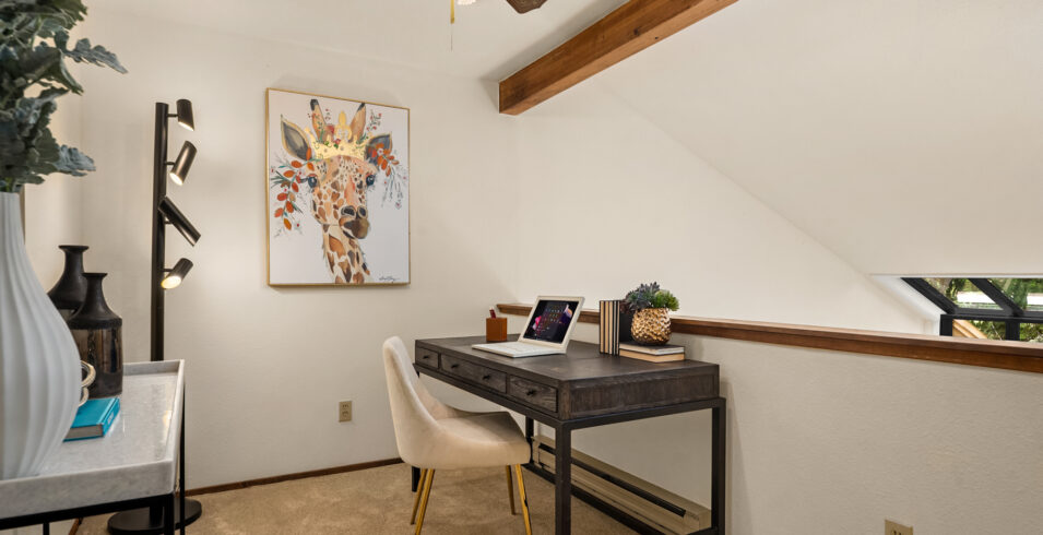 Open-concept main floor with fireplace and greenbelt deck, bright kitchen with breakfast bar, and vaulted-ceiling primary suite featuring a private deck, loft, and skylights. Two more bedrooms, updated baths, and a 4-car garage round out the layout. Recent exterior updates offer peace of mind and lasting value.